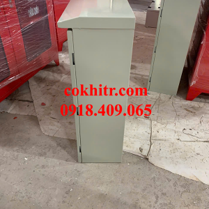 Mái tủ hàn liền với thân, tủ không có chân đế. Tủ thiết kế với 2 lớp cánh, cánh ngoài sử dụng khóa tay nắm, cánh trong sử dụng khóa núm xoay chắc chắn. Khách hàng về tự khoét lỗ trên cánh để lắp đặt.