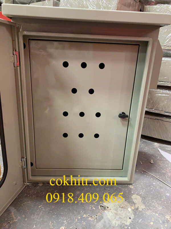 Vỏ tủ điện 2 lớp cánh trong nhà kích thước 1200x600x300x1,2mm sơn tĩnh điện có tấm panel cánh ngoài khoét lỗ giá tốt tại xưởng hà nội và TP HCM