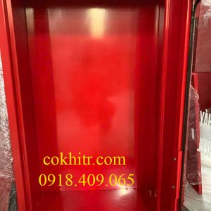 • Thép dày 1,2mm chuẩn: Đảm bảo tủ không bị vặn xoắn, móp méo khi chứa các thiết bị nặng như bình chữa cháy $CO_2$ hay cuộn vòi lớn.