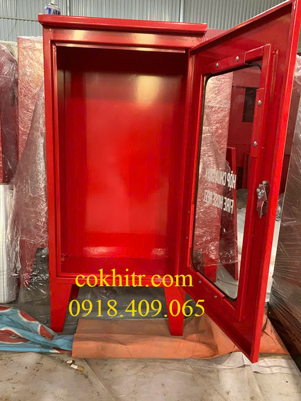 Vỏ tủ PCCC có chân sơn tĩnh điện màu đỏ kích thước 1200x600x200x1,2mm cánh ngoài gắn kính có hèm bẫy nước giá tốt tại xưởng hà nội và TP HCM